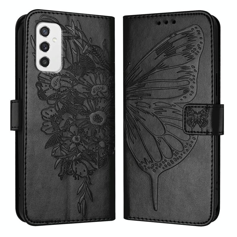 Για Samsung Galaxy M52 5G ανάγλυφη πεταλούδα δερμάτινη θήκη τηλεφώνου (μαύρο)