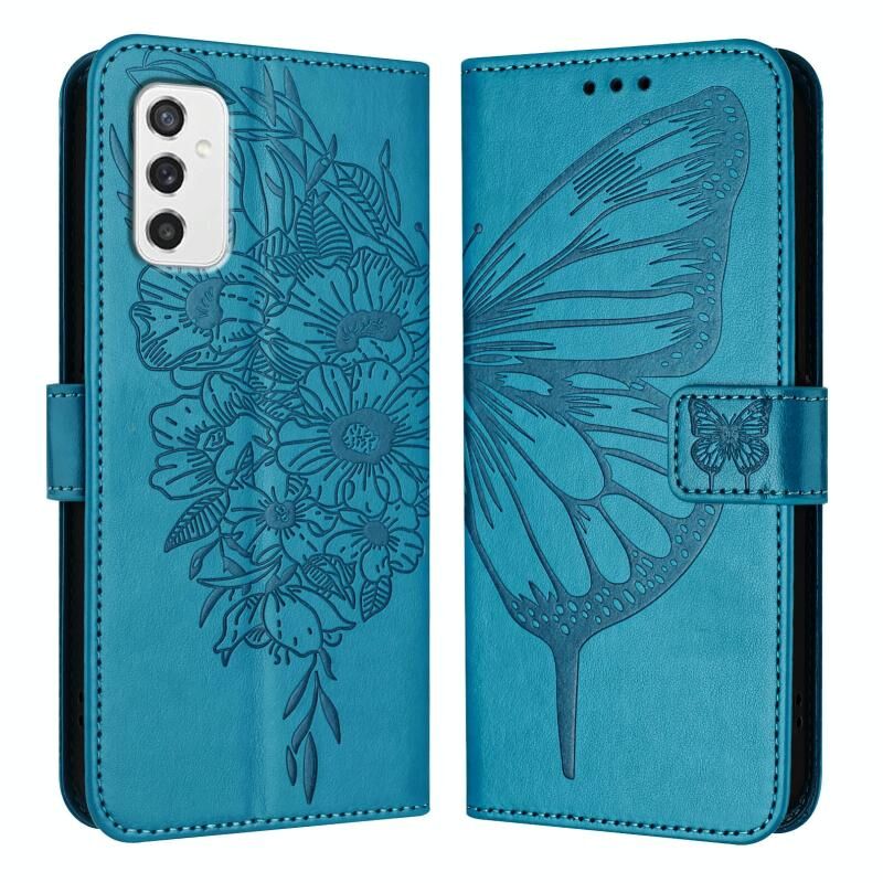 Για Samsung Galaxy M52 5G ανάγλυφη πεταλούδα δερμάτινη θήκη τηλεφώνου (Μπλε)