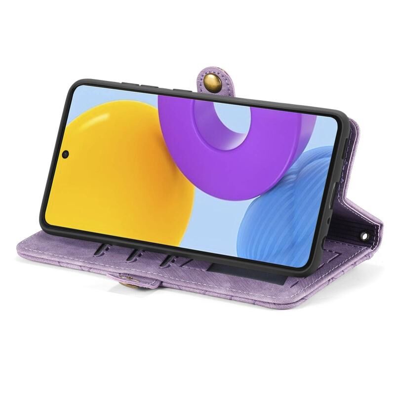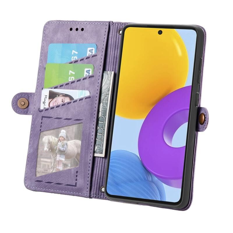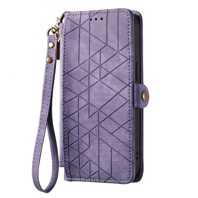 Για Samsung Galaxy M52 5G γεωμετρική φερμουάρ πορτοφόλι πλευρά πόρπη δερμάτινη θήκη τηλεφώνου (μωβ)