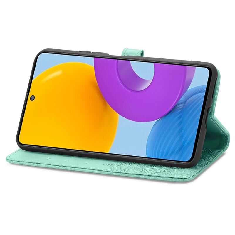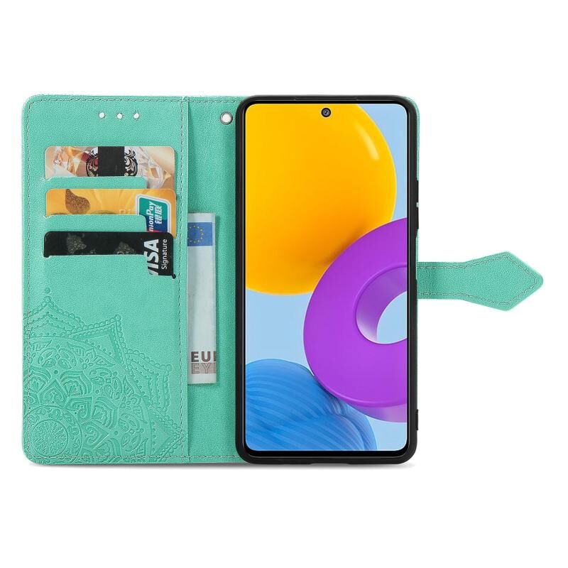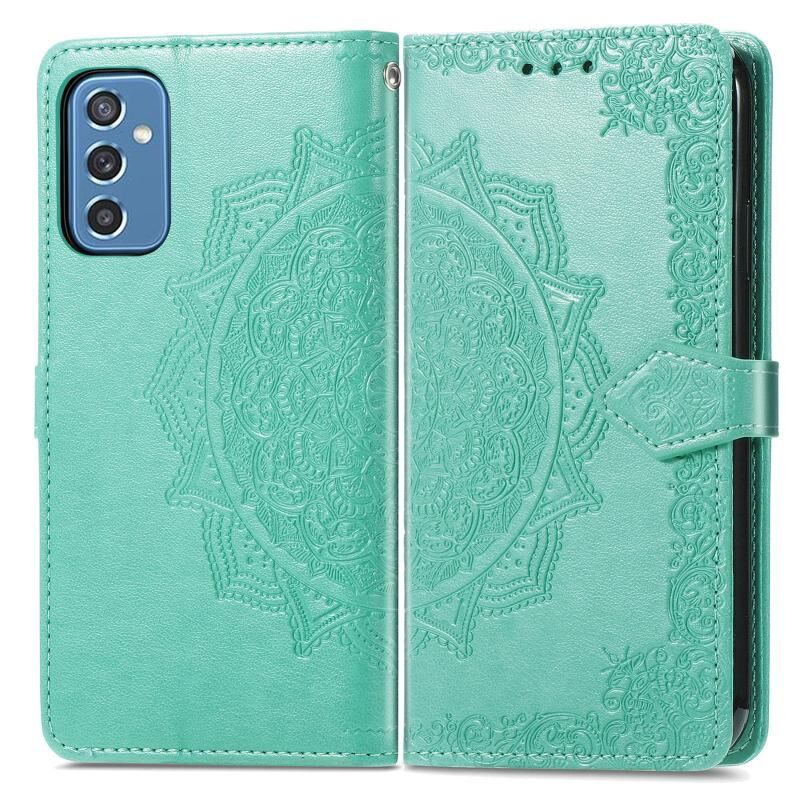Για Samsung Galaxy M52 5G Mandala λουλούδι ανάγλυφο οριζόντια Flip δερμάτινη θήκη με θήκη & υποδοχές για κάρτες & πορτοφόλι & κορδόνι (πράσινο)