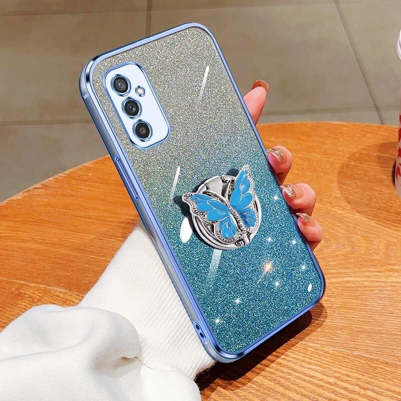 Θήκη κινητού τηλεφώνου Samsung Galaxy M52 5G, επιμεταλλωμένη, διαβαθμισμένης λάμψης, με σχέδιο πεταλούδας, από TPU (Ροζ)