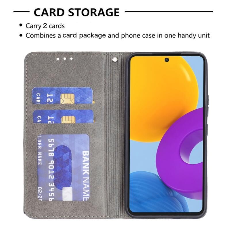 Για Samsung Galaxy M52 5G Prismatic Αόρατο μαγνητικό οριζόντιο Flip τηλέφωνο δερμάτινη θήκη με θήκη & υποδοχές για κάρτες & πλαίσιο φωτογραφιών (Γκρι)