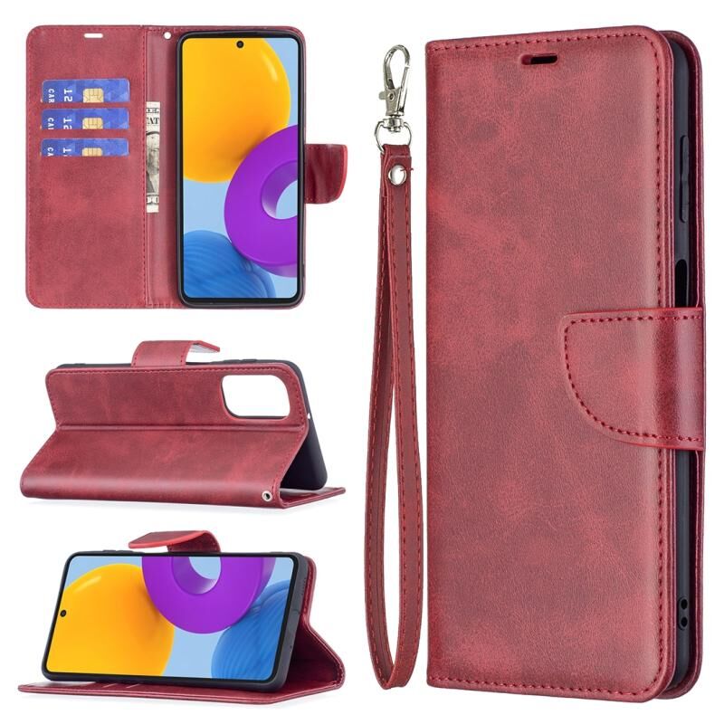 Για Samsung Galaxy M52 5G Retro Lambskin υφή καθαρό χρώμα οριζόντια Flip δέρμα τηλέφωνο υπόθεση με θήκη & υποδοχές για κάρτες & πορτοφόλι & Lanyard (κόκκινο)
