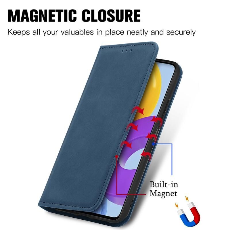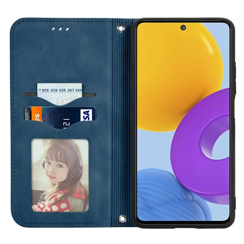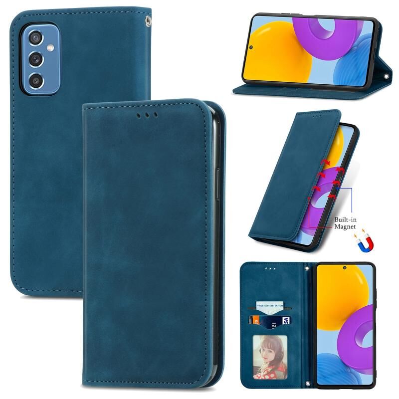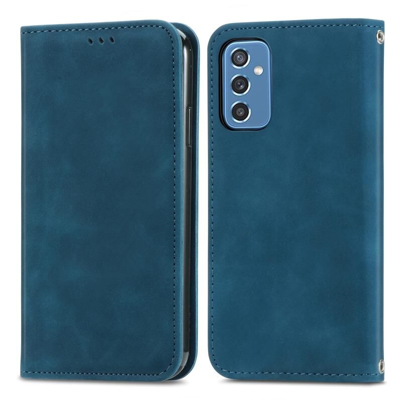 Για Samsung Galaxy M52 5G Retro Skin Feel Μαγνητική οριζόντια Flip δερμάτινη θήκη με θήκη & υποδοχές για κάρτες & πορτοφόλι & κορνίζα φωτογραφιών (μπλε)