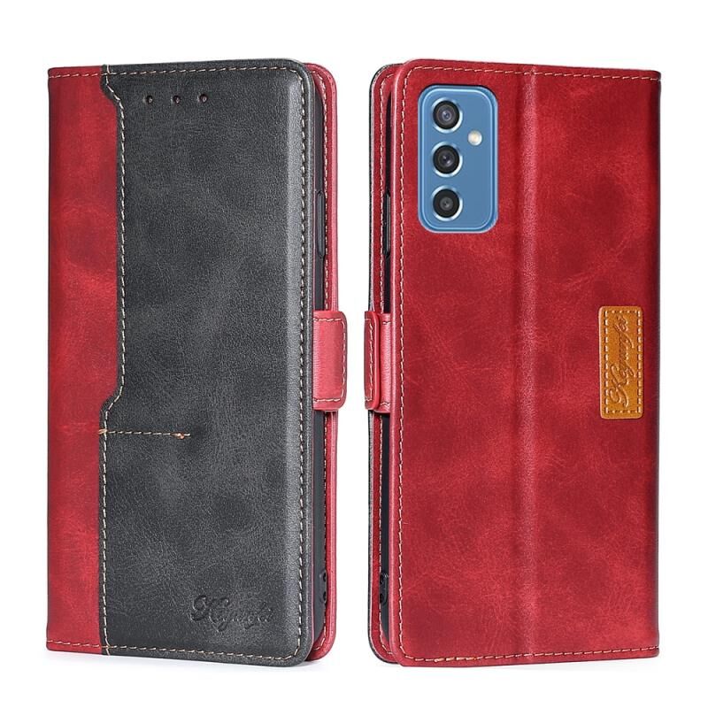 Για Samsung Galaxy M52 5G Retro υφή αντίθεση χρώμα πόρπη οριζόντια Flip δερμάτινη θήκη με θήκη (κόκκινο + μαύρο)