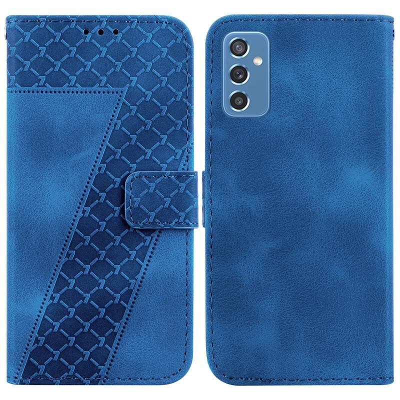 Θήκη τηλεφώνου από ανάγλυφο δέρμα σε σχήμα επτά για Samsung Galaxy M52 5G (Μπλε)