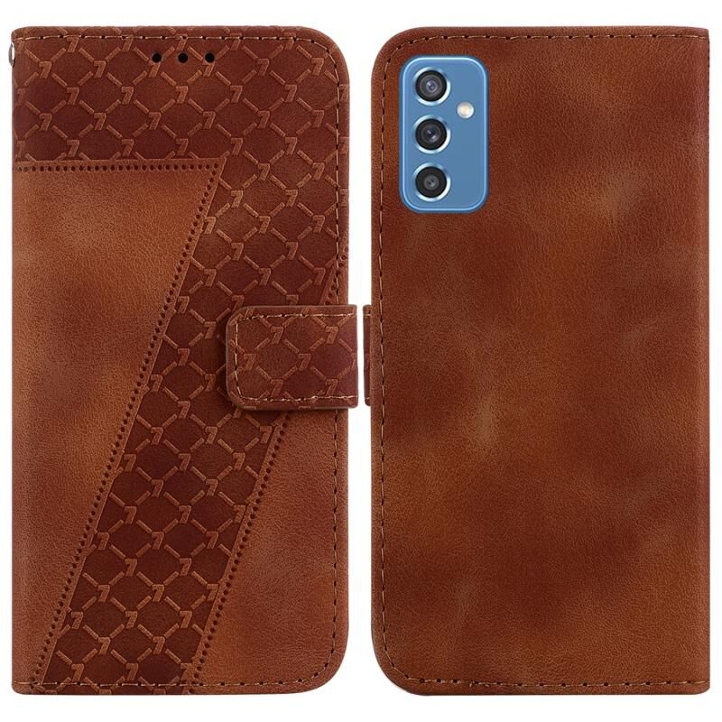 Θήκη τηλεφώνου από ανάγλυφο δέρμα σε σχήμα επτά για Samsung Galaxy M52 5G (Καφέ)