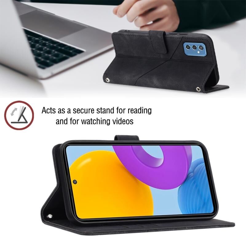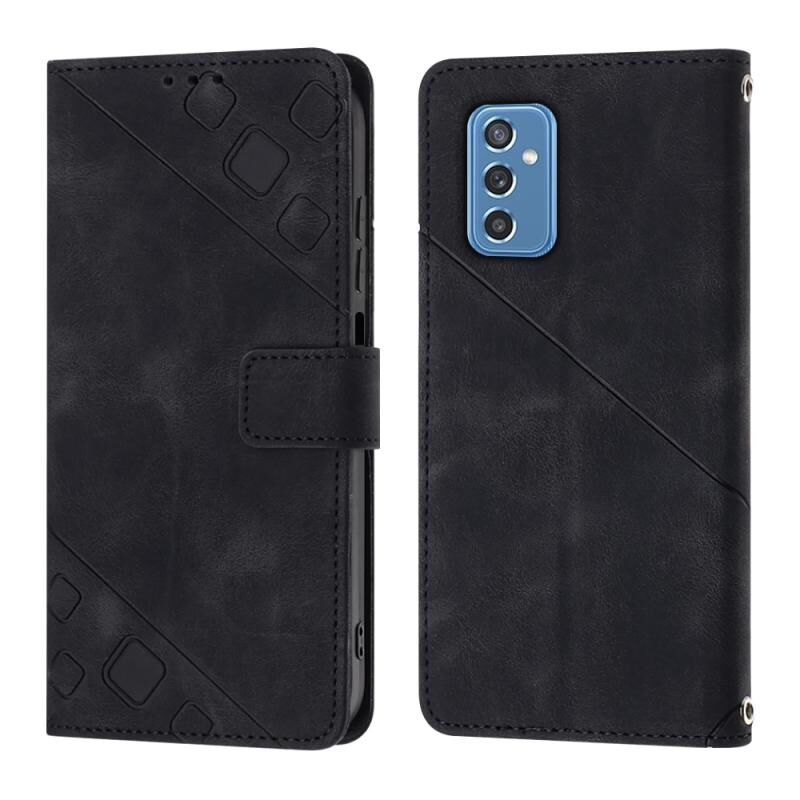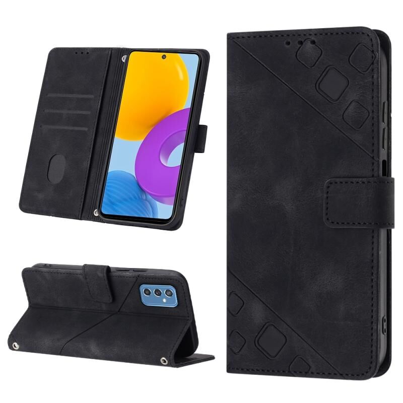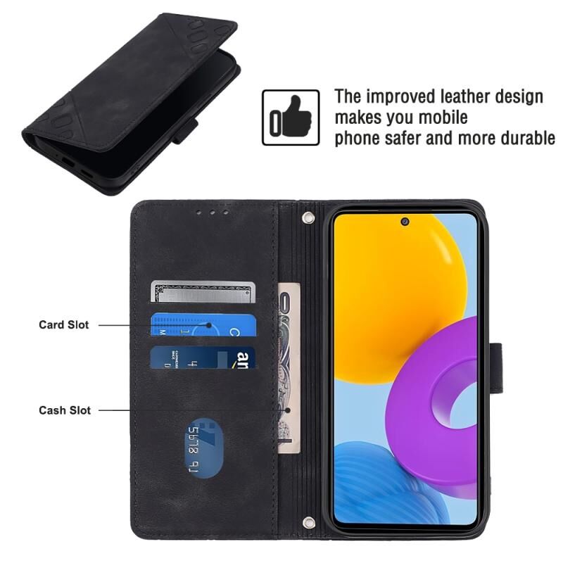 Για Samsung Galaxy M52 5G Skin-feel ανάγλυφη δερμάτινη θήκη τηλεφώνου (μαύρο)