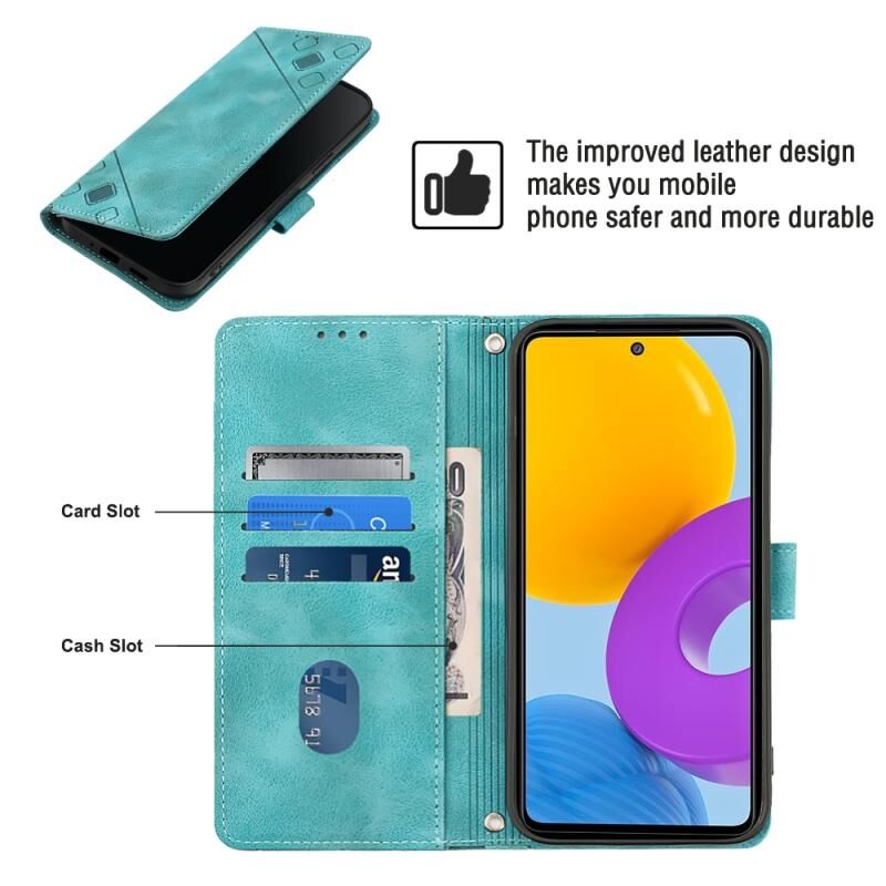 Για Samsung Galaxy M52 5G Skin-feel ανάγλυφη δερμάτινη θήκη τηλεφώνου (πράσινο)