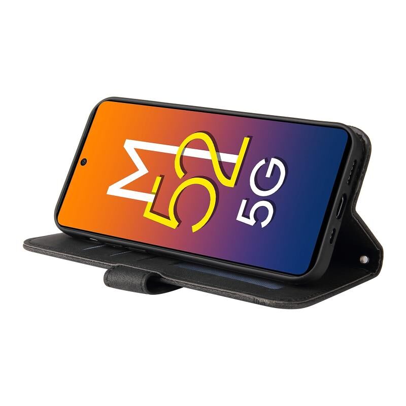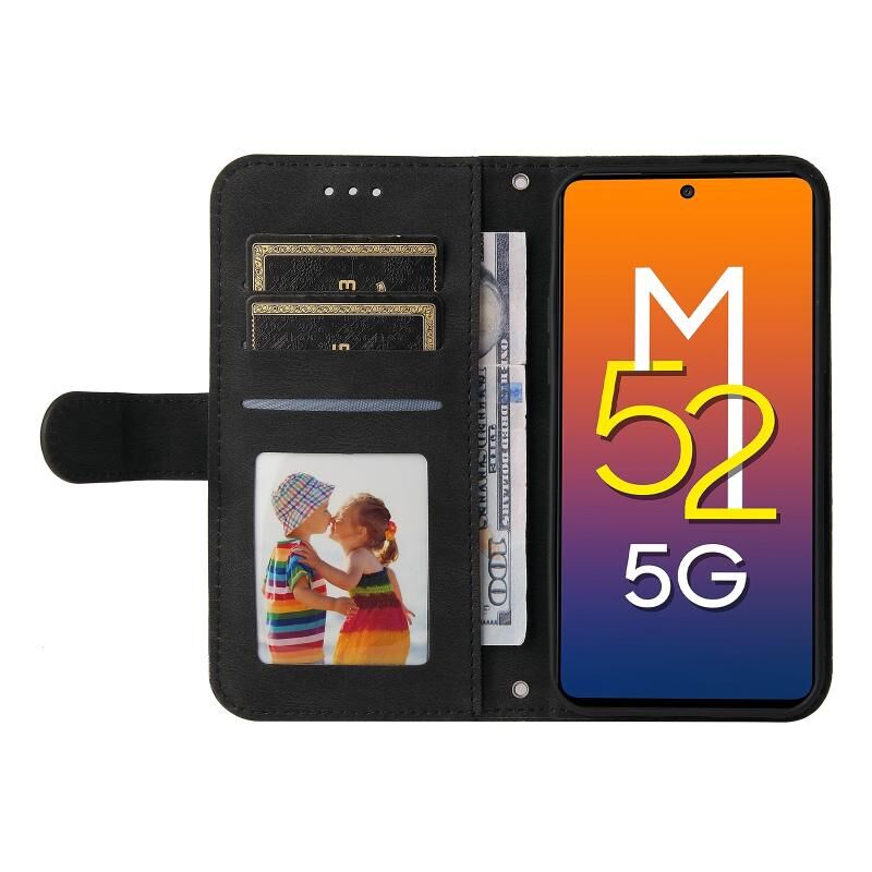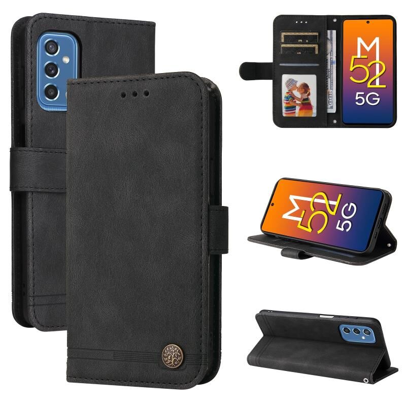 Για Samsung Galaxy M52 5G δέρμα αίσθηση ζωής δέντρο μεταλλικό κουμπί οριζόντια Flip δέρμα τηλέφωνο υπόθεση (Μαύρο)