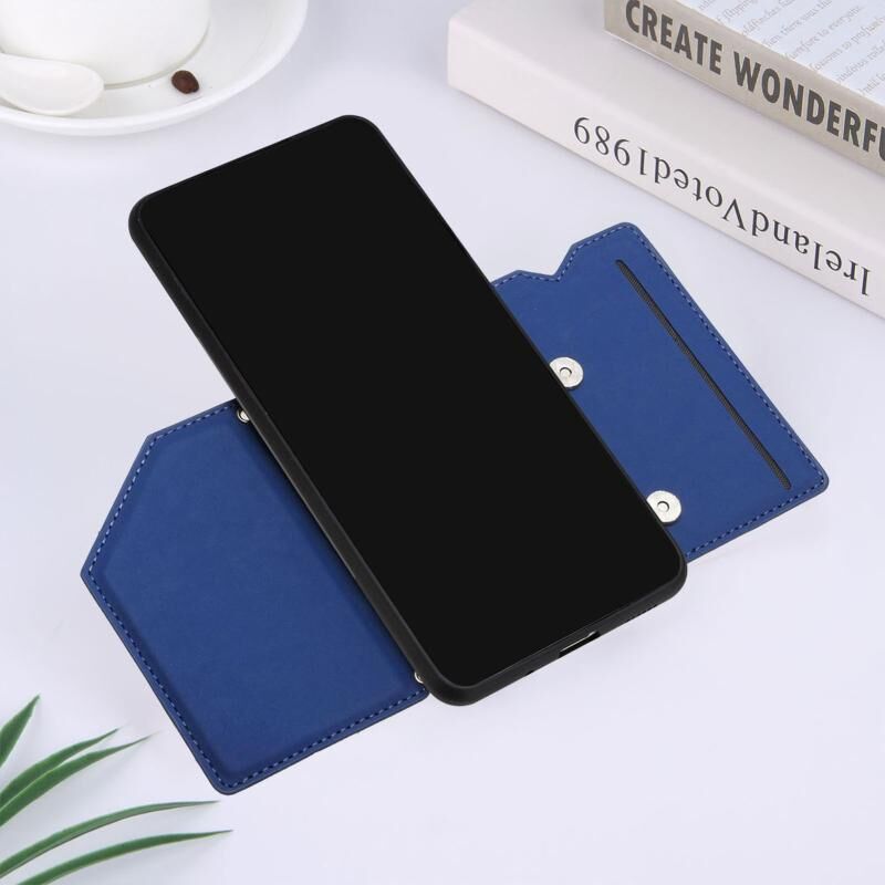 Για Samsung Galaxy M52 5G δέρμα αίσθηση PU + TPU + PC πίσω κάλυμμα Αδιάβροχο τηλέφωνο υπόθεση με υποδοχές για κάρτες & κάτοχος & πλαίσιο φωτογραφιών (Μπλε)