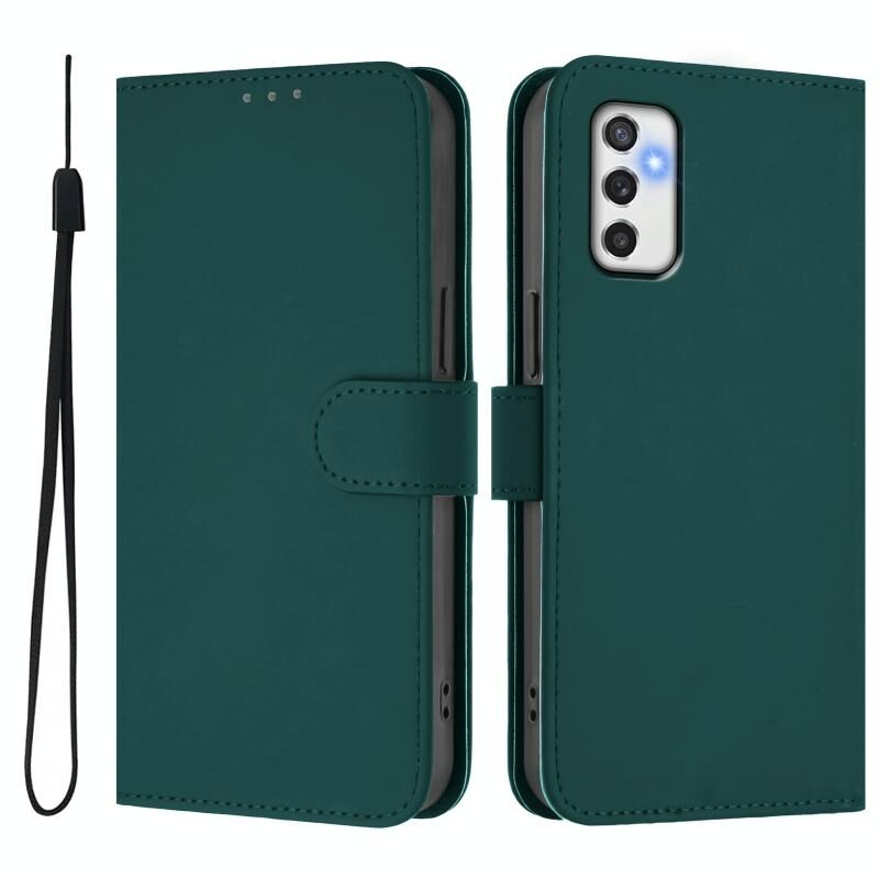 Για Samsung Galaxy M52 5G δέρμα αίσθηση στερεό χρώμα δερμάτινη θήκη τηλεφώνου με κορδόνι (σκούρο πράσινο)