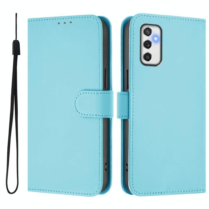 Για Samsung Galaxy M52 5G δέρμα αίσθηση στερεό χρώμα δερμάτινη θήκη τηλεφώνου με κορδόνι (Sky Blue)