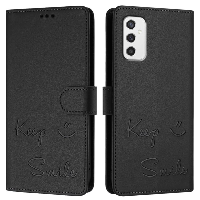 For Samsung Galaxy M52 5G Smile Embossing RFID Leather Phone Case(Black)