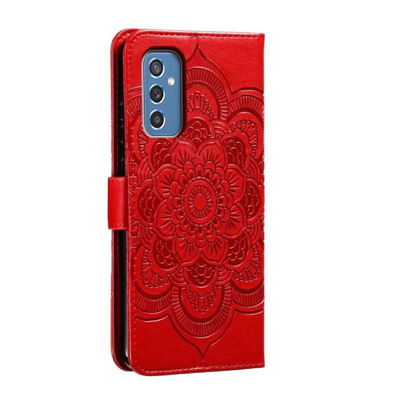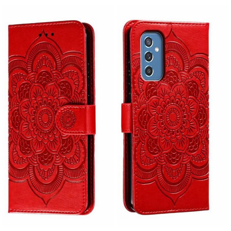 Για Samsung Galaxy M52 5G Sun Mandala ανάγλυφο μοτίβο τηλέφωνο δερμάτινη θήκη (κόκκινο)