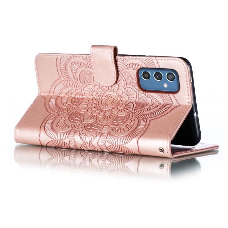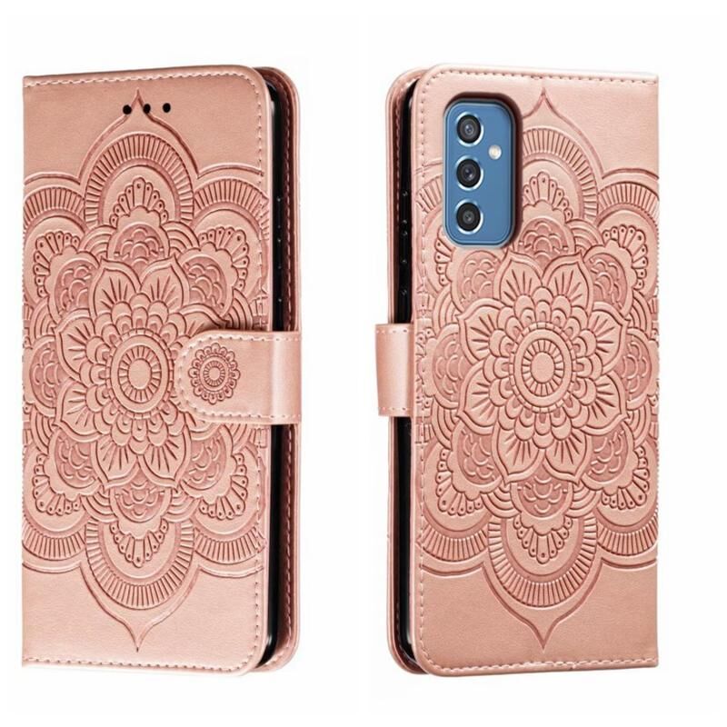 Για Samsung Galaxy M52 5G Sun Mandala ανάγλυφο μοτίβο τηλέφωνο δερμάτινη θήκη (Rose Gold)