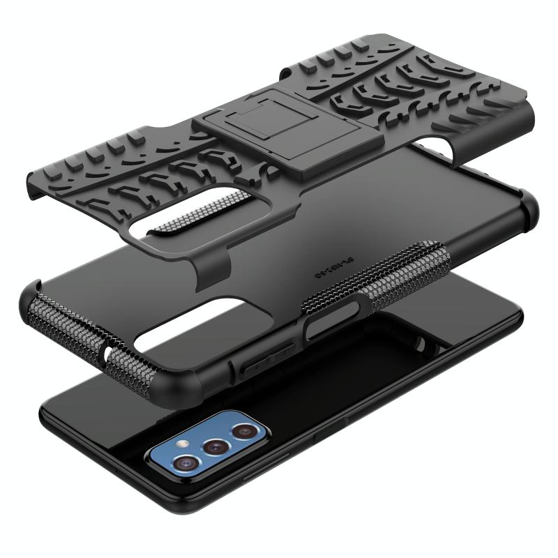 Θήκη κινητού τηλεφώνου για Samsung Galaxy M52 5G με υφή ελαστικού + PC και βάση στήριξης (Μαύρο)