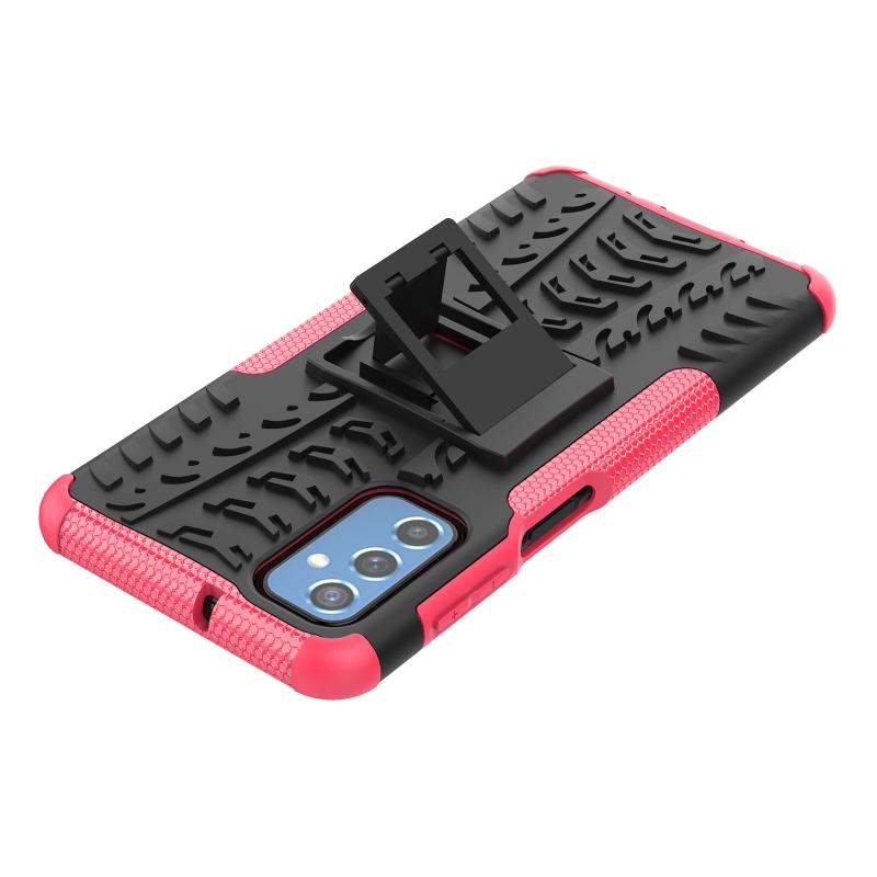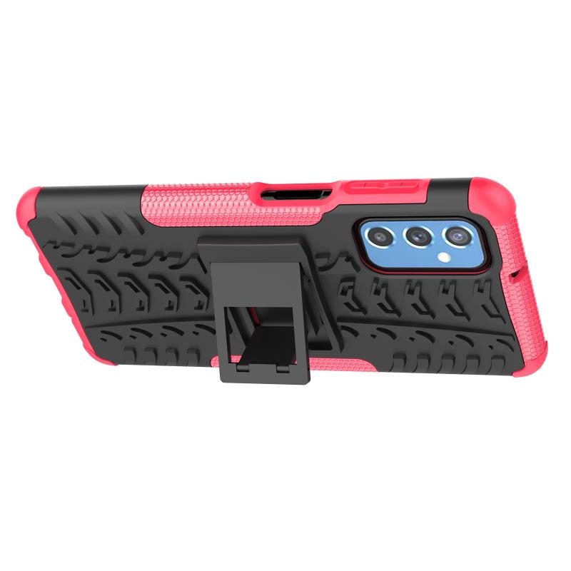 Θήκη κινητού τηλεφώνου για Samsung Galaxy M52 5G με υφή ελαστικού + PC και βάση στήριξης (ρόζ)