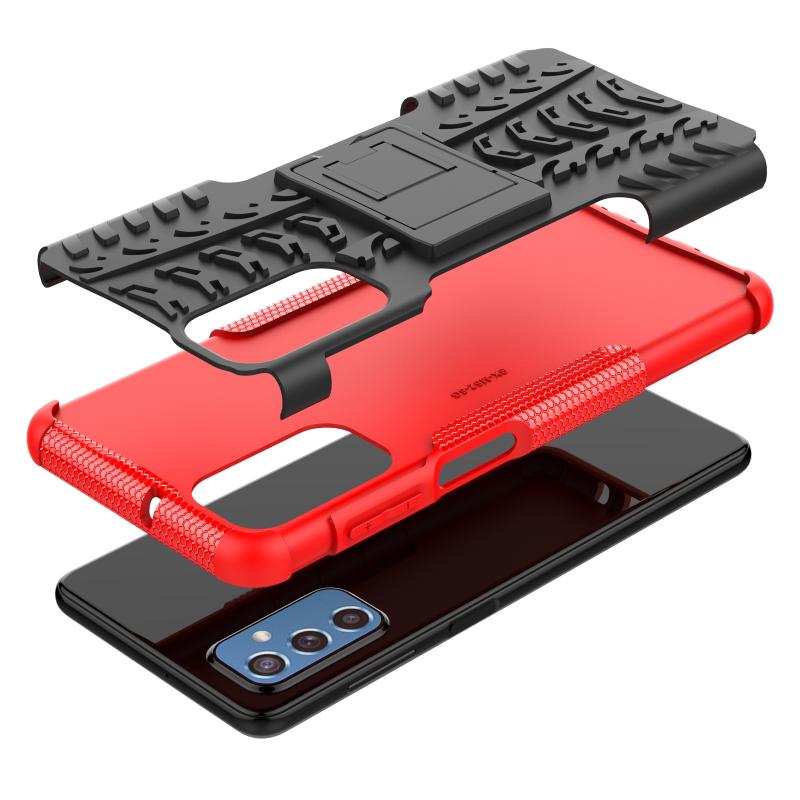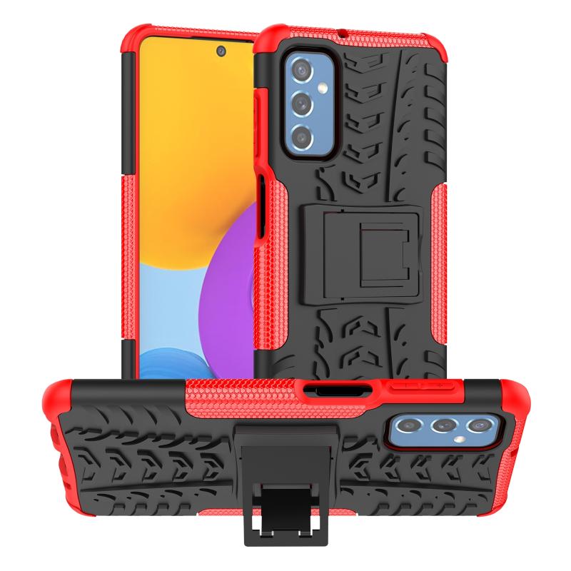Θήκη κινητού τηλεφώνου για Samsung Galaxy M52 5G με υφή ελαστικού + PC και βάση στήριξης (Κόκκινο)