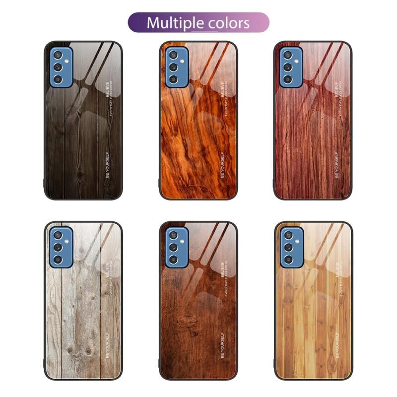 Για Samsung Galaxy M52 5G Wood Grain Glass Προστατευτική θήκη τηλεφώνου (ανοιχτό καφέ)
