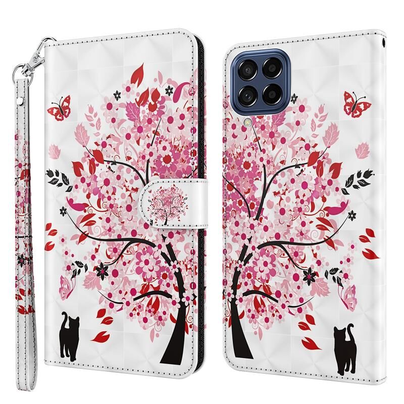 Θήκη κινητού τηλεφώνου Samsung Galaxy M53 3D ζωγραφική σχέδιο TPU + Δερμάτινη PU (Γάτα κάτω από το δέντρο)