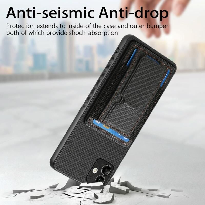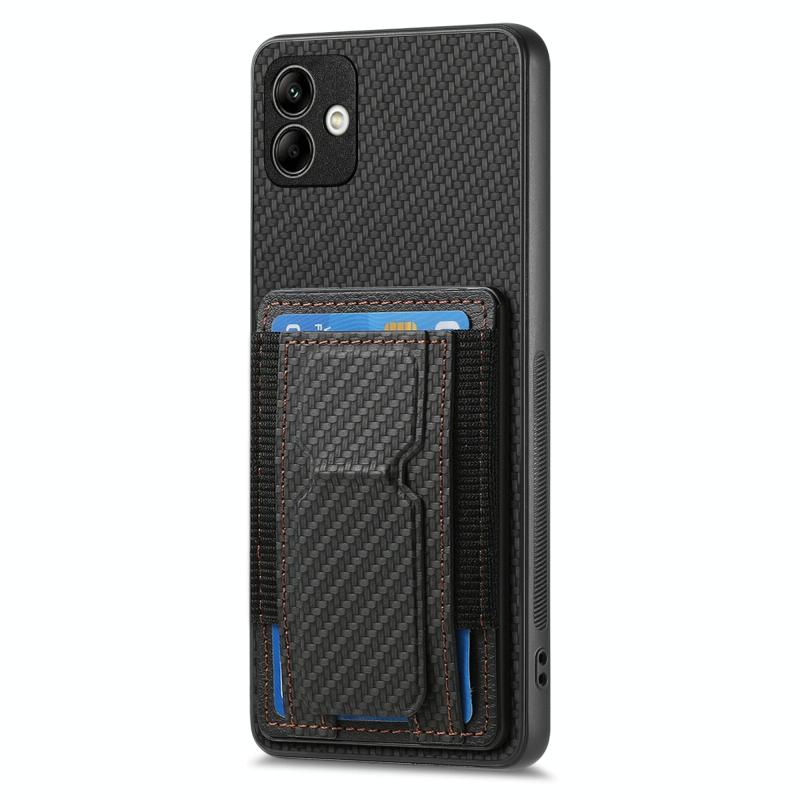 For Samsung Galaxy M53 5G Carbon Fiber Fold Stand Elastic Card Bag Phone Case(Black)