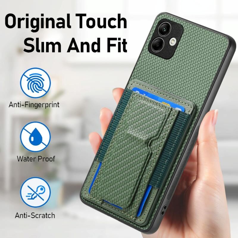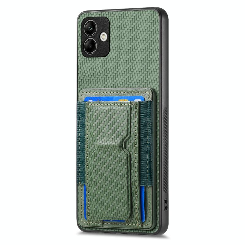 For Samsung Galaxy M53 5G Carbon Fiber Fold Stand Elastic Card Bag Phone Case(Green)