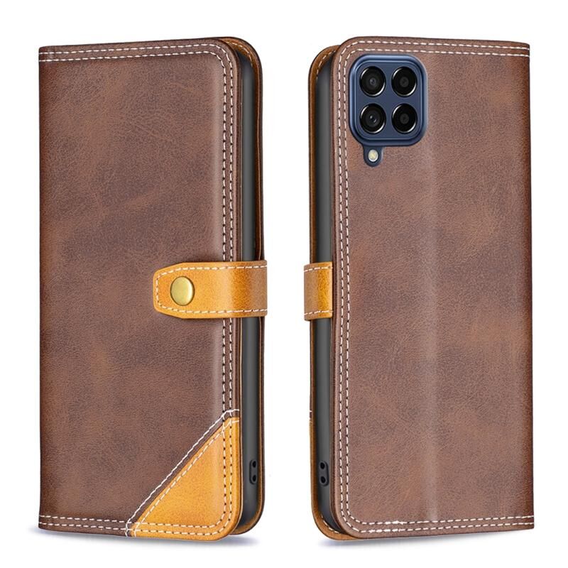 Θήκη τηλεφώνου Samsung Galaxy M53 5G από δέρμα με διπλή ραφή και αντιστοίχιση χρώματος (Καφέ)
