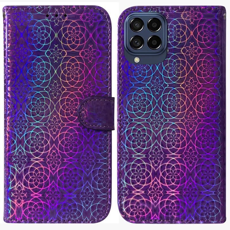 Για Samsung Galaxy M53 5G Πολύχρωμο μαγνητική πόρπη δερμάτινη θήκη τηλεφώνου (μωβ)