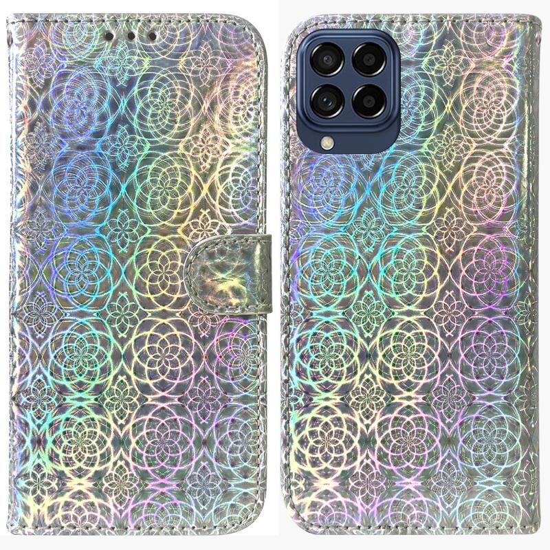 Για Samsung Galaxy M53 5G Πολύχρωμο μαγνητική πόρπη δερμάτινη θήκη τηλεφώνου (Ασημί)