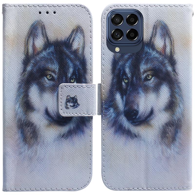 For Samsung Galaxy M53 5G Coloured Drawing Leather Phone Case(White Wolf)