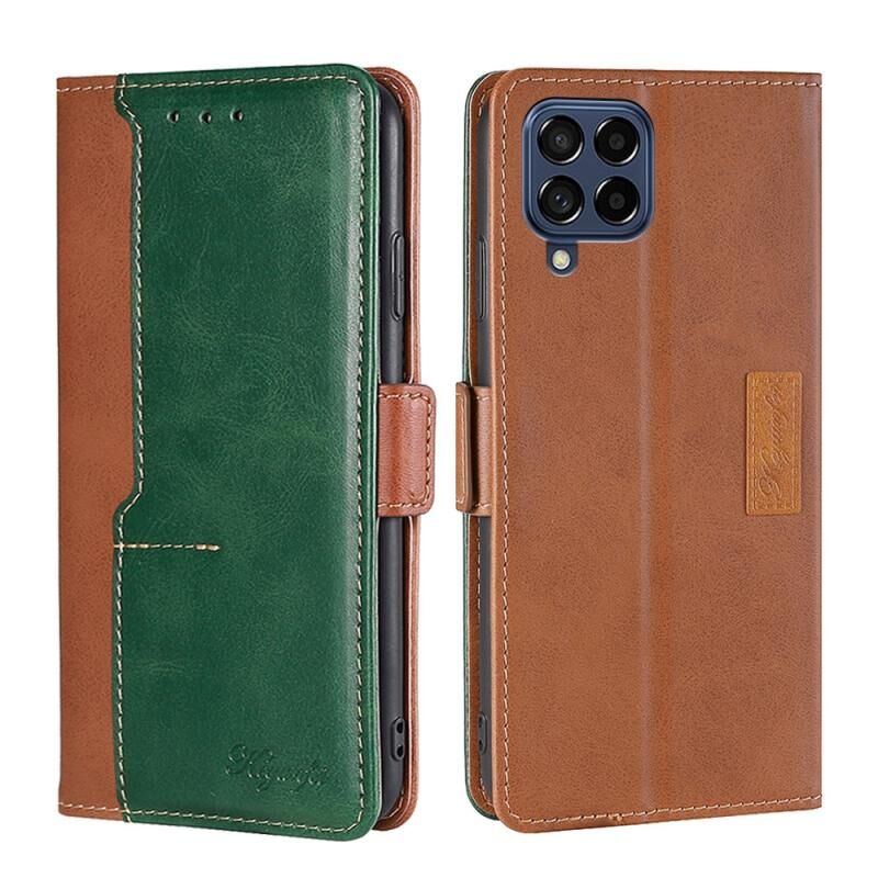 Για Samsung Galaxy M53 5G αντίθεση χρώμα πλευρά πόρπη δερμάτινη θήκη τηλεφώνου (Ανοιχτό καφέ και πράσινο)
