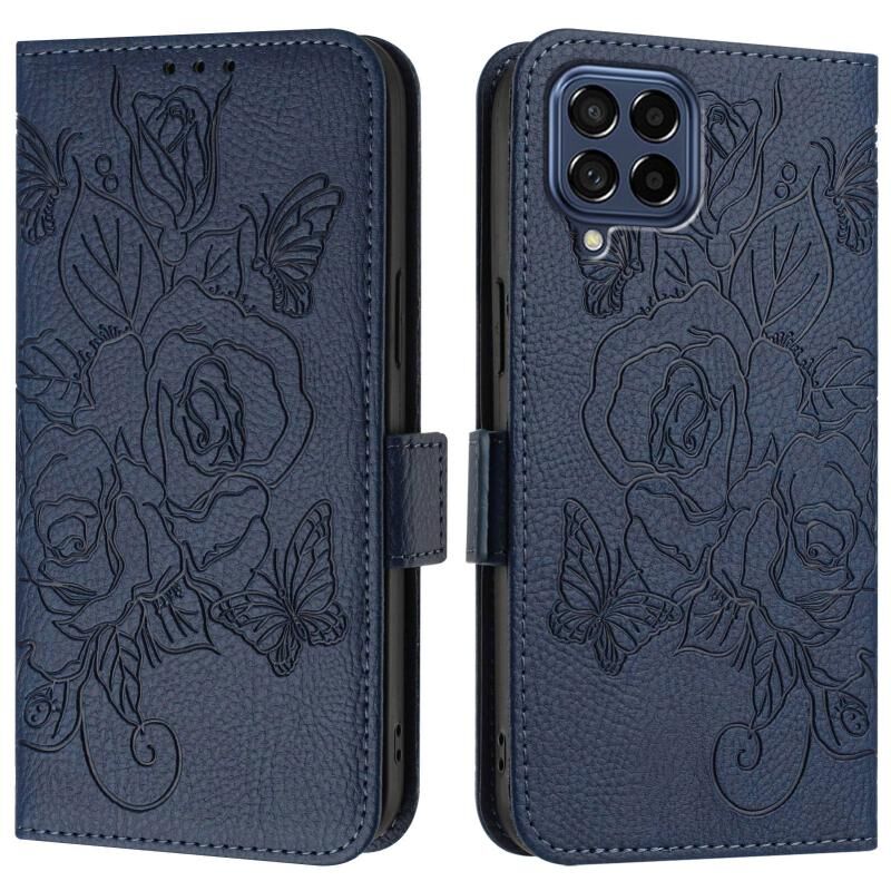 Θήκη τηλεφώνου δερμάτινη με ανάγλυφο σχέδιο τριαντάφυλλου και προστασία RFID κατά της κλοπής για Samsung Galaxy M53 5G (Πράσινη)