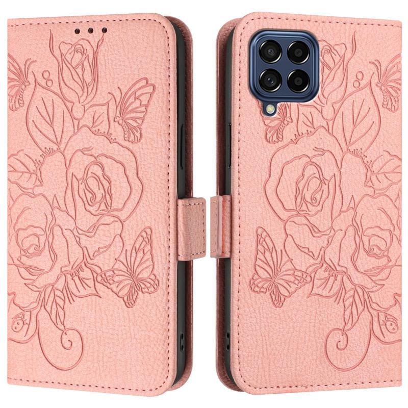 For Samsung Galaxy M53 5G Embossed Rose RFID Anti-theft Leather Phone Case(Pink)