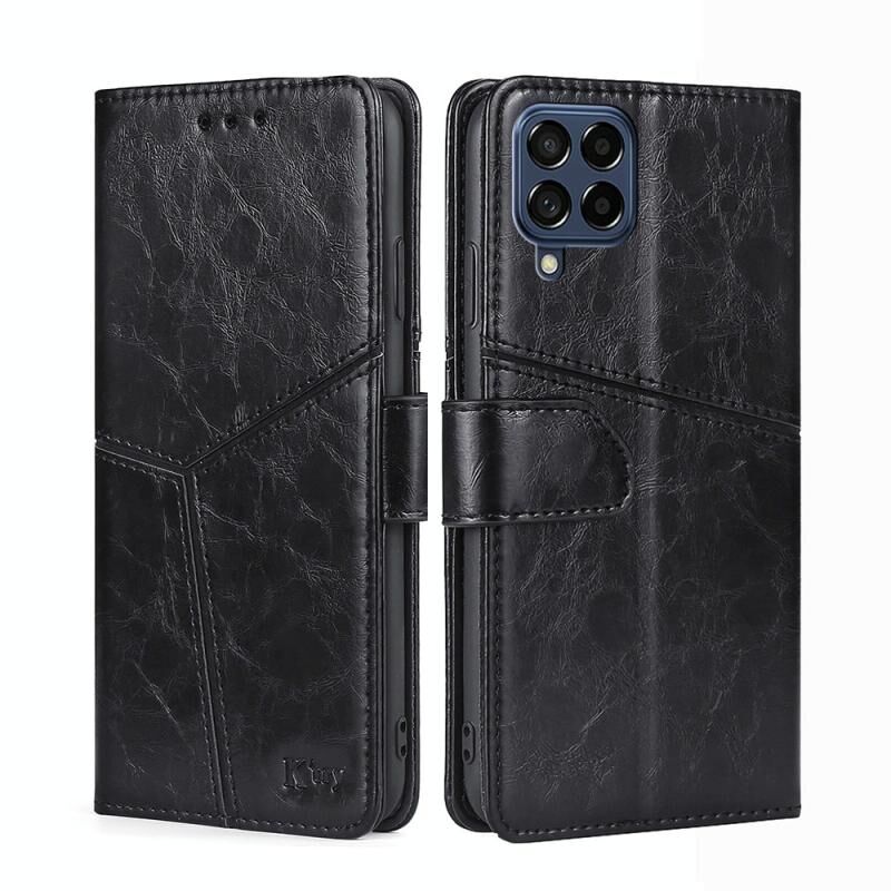 Για Samsung Galaxy M53 5G Γεωμετρική ραφή οριζόντια Flip TPU + PU δέρμα τηλέφωνο υπόθεση (μαύρο)
