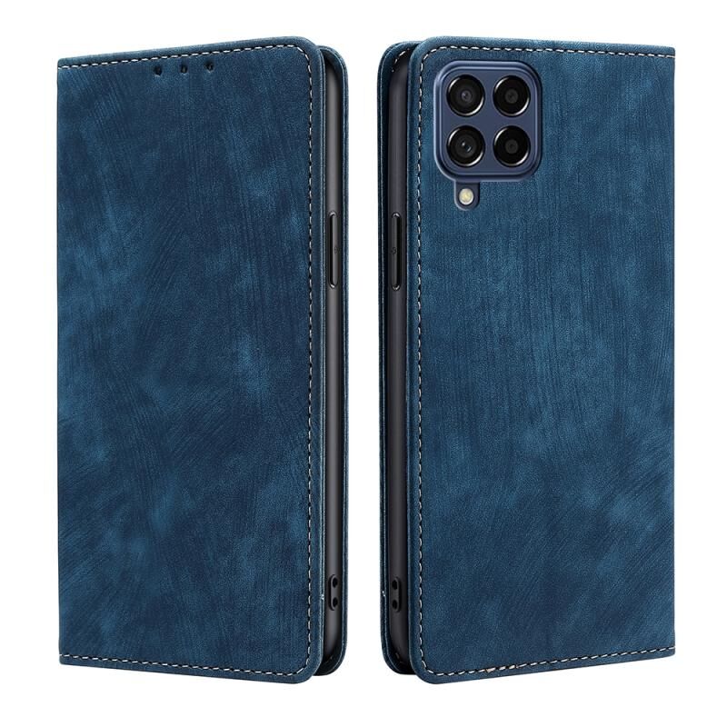 Για Samsung Galaxy M53 5G RFID Anti-theft Brush Μαγνητική δερμάτινη θήκη τηλεφώνου (Μπλε)