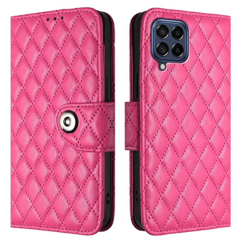 Θήκη τηλεφώνου Samsung Galaxy M53 5G με δερμάτινη υφή ρόμβου και λουρί (Κόκκινο)