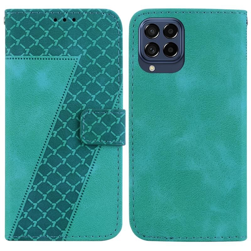 Θήκη τηλεφώνου από ανάγλυφο δέρμα σε σχήμα επτά για Samsung Galaxy M53 5G (Πράσινο)