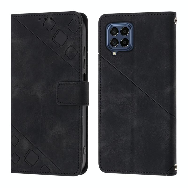 Για Samsung Galaxy M53 5G Skin-feel ανάγλυφη δερμάτινη θήκη τηλεφώνου (μαύρο)