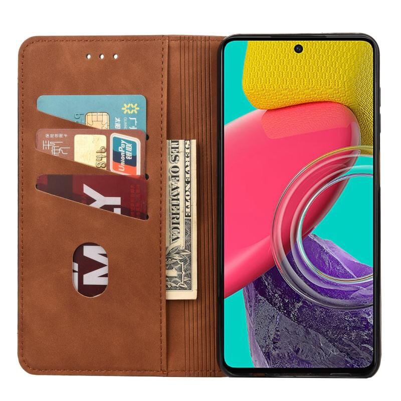 Για το Samsung Galaxy M53 5G δέρμα αίσθηση Splicing δέρμα τηλέφωνο υπόθεση (Καφέ)