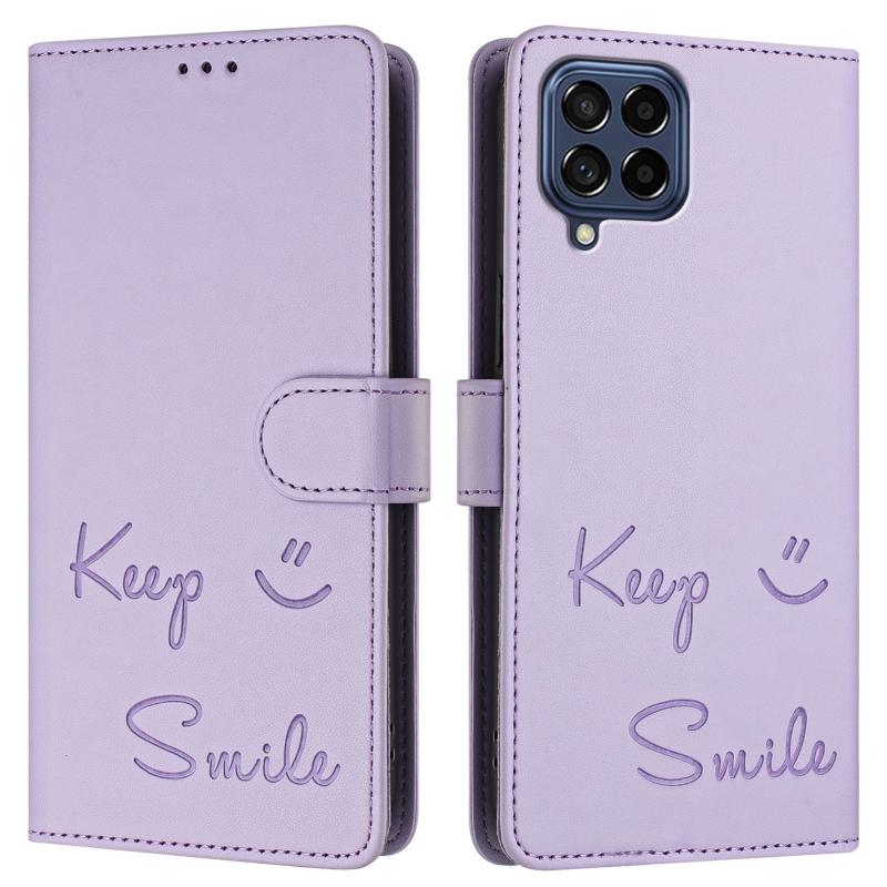 For Samsung Galaxy M53 5G Smile Embossing RFID Leather Phone Case(Light Purple)