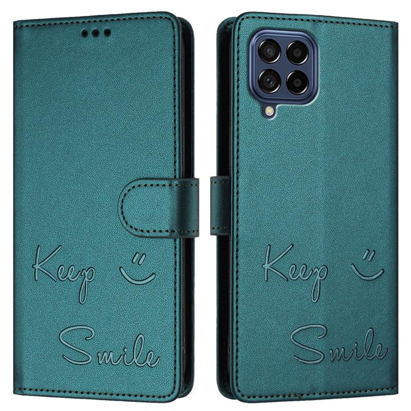 For Samsung Galaxy M53 5G Smile Embossing RFID Leather Phone Case(Peacock Green)