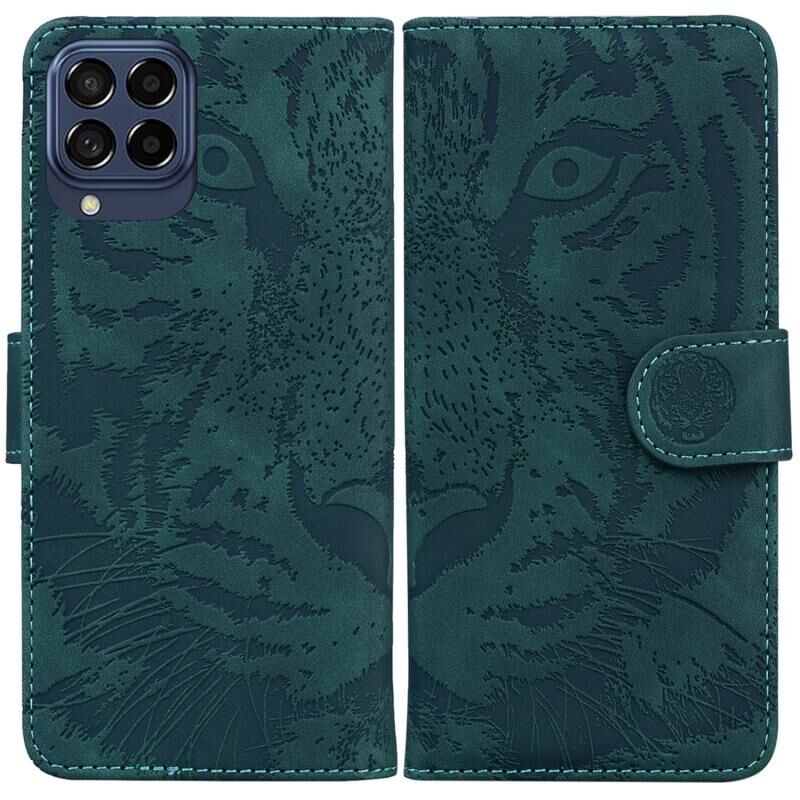 Θήκη τηλεφώνου Samsung Galaxy M53 5G από δέρμα με ανάγλυφο τίγρη (Μαύρο)