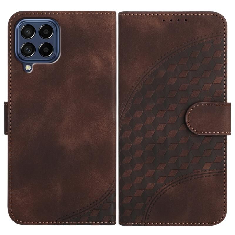Για Samsung Galaxy M53 5G YX0060 Ελέφαντας κεφάλι ανάγλυφο τηλέφωνο δερμάτινη θήκη με κορδόνι (καφέ)