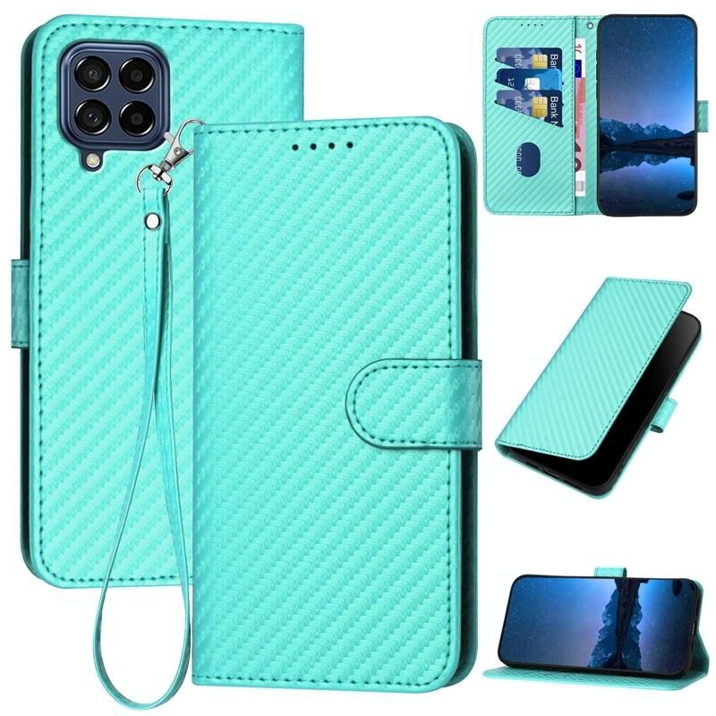 Για Samsung Galaxy M53 5G YX0070 Carbon Fiber πόρπη δερμάτινη θήκη τηλεφώνου με κορδόνι (γαλάζιο)