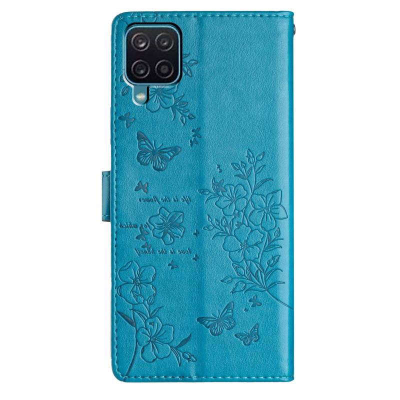 For Samsung Galaxy M53 Butterflies and Flowers Leather Phone Case(Blue)