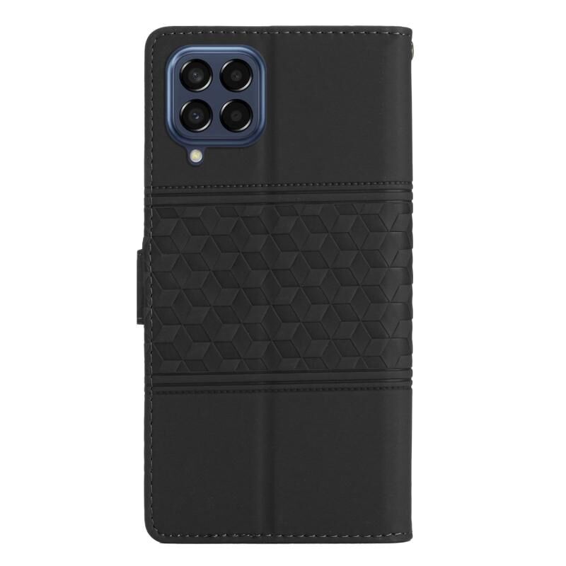 Για Samsung Galaxy M53 Diamond ανάγλυφο δέρμα αίσθηση δέρμα τηλέφωνο υπόθεση με κορδόνι (μαύρο)