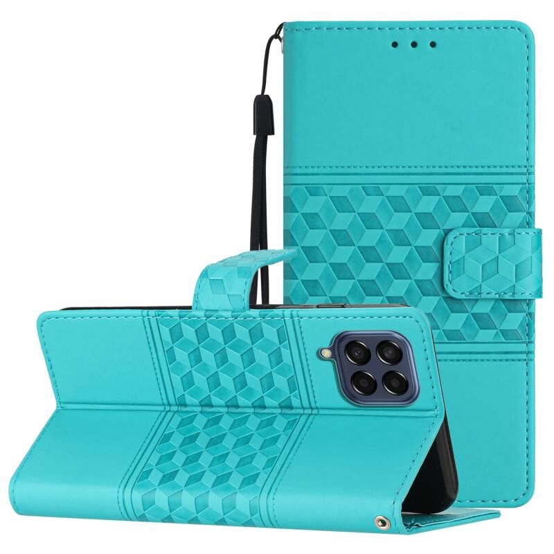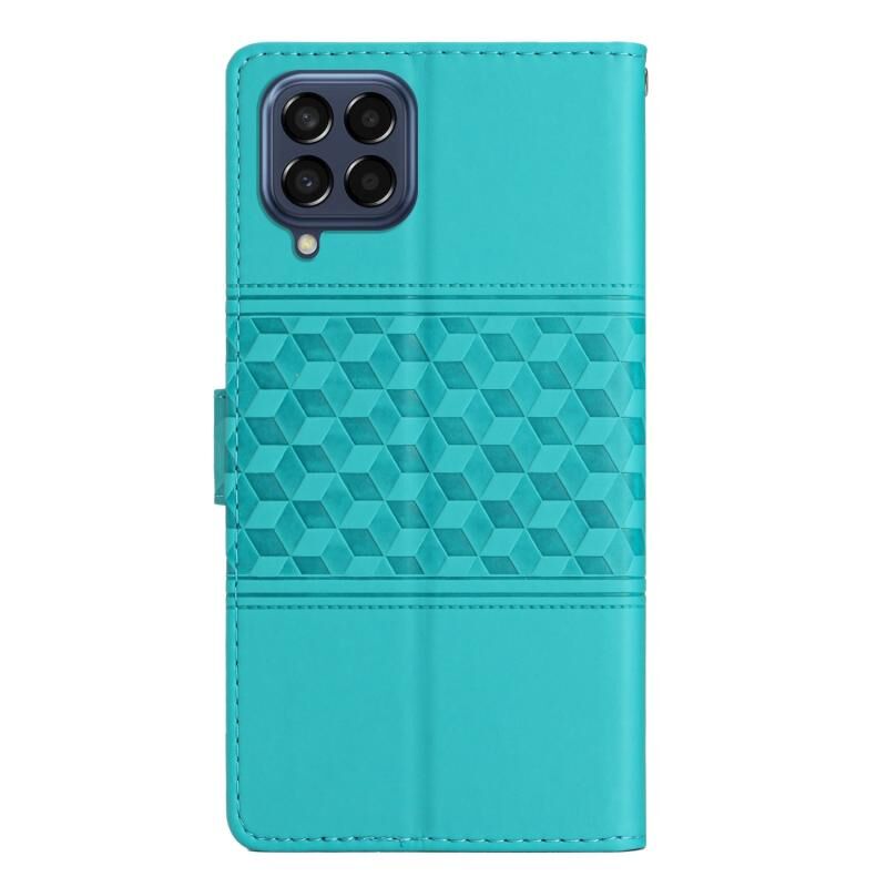 Για Samsung Galaxy M53 Diamond ανάγλυφο δέρμα αίσθηση δέρμα υπόθεση τηλεφώνου με κορδόνι (μπλε)