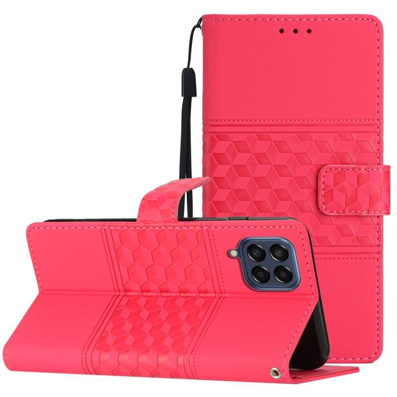Για Samsung Galaxy M53 Diamond ανάγλυφο δέρμα αίσθηση δέρμα υπόθεση τηλεφώνου με κορδόνι (κόκκινο)