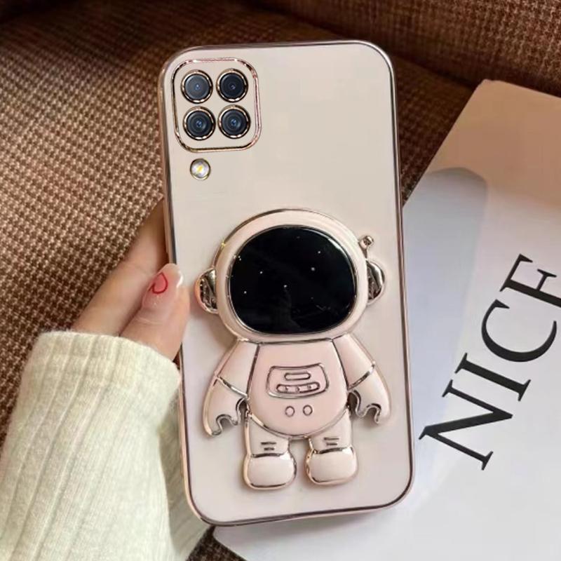 For Samsung Galaxy M53 Electroplating Astronaut Holder Phone Case(Pink)